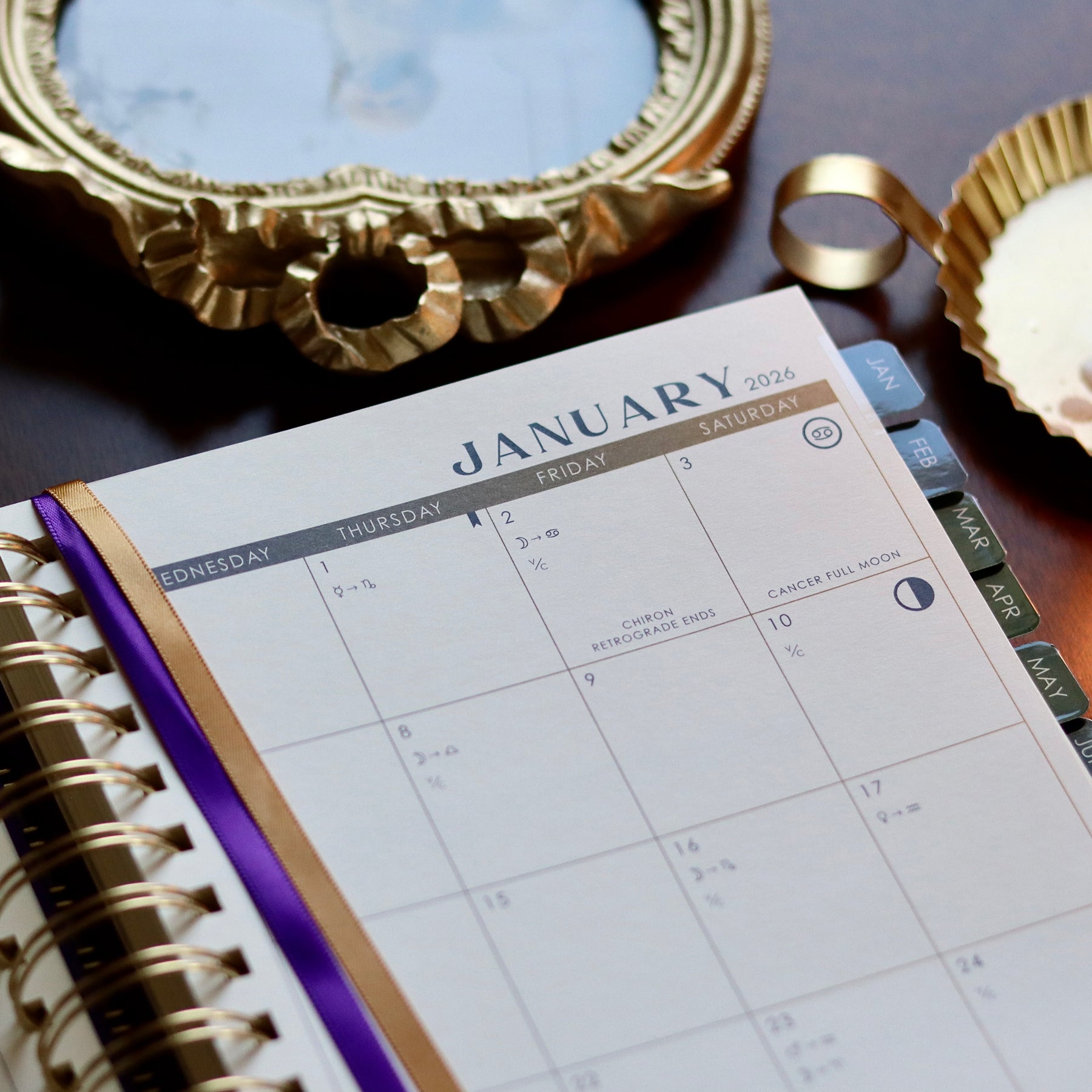 The Auralign Digital Astrology Calendar automatically adds 2026’s most important astrological events including planet transits, retrogrades, eclipses and moon phases directly into your favorite calendar app.