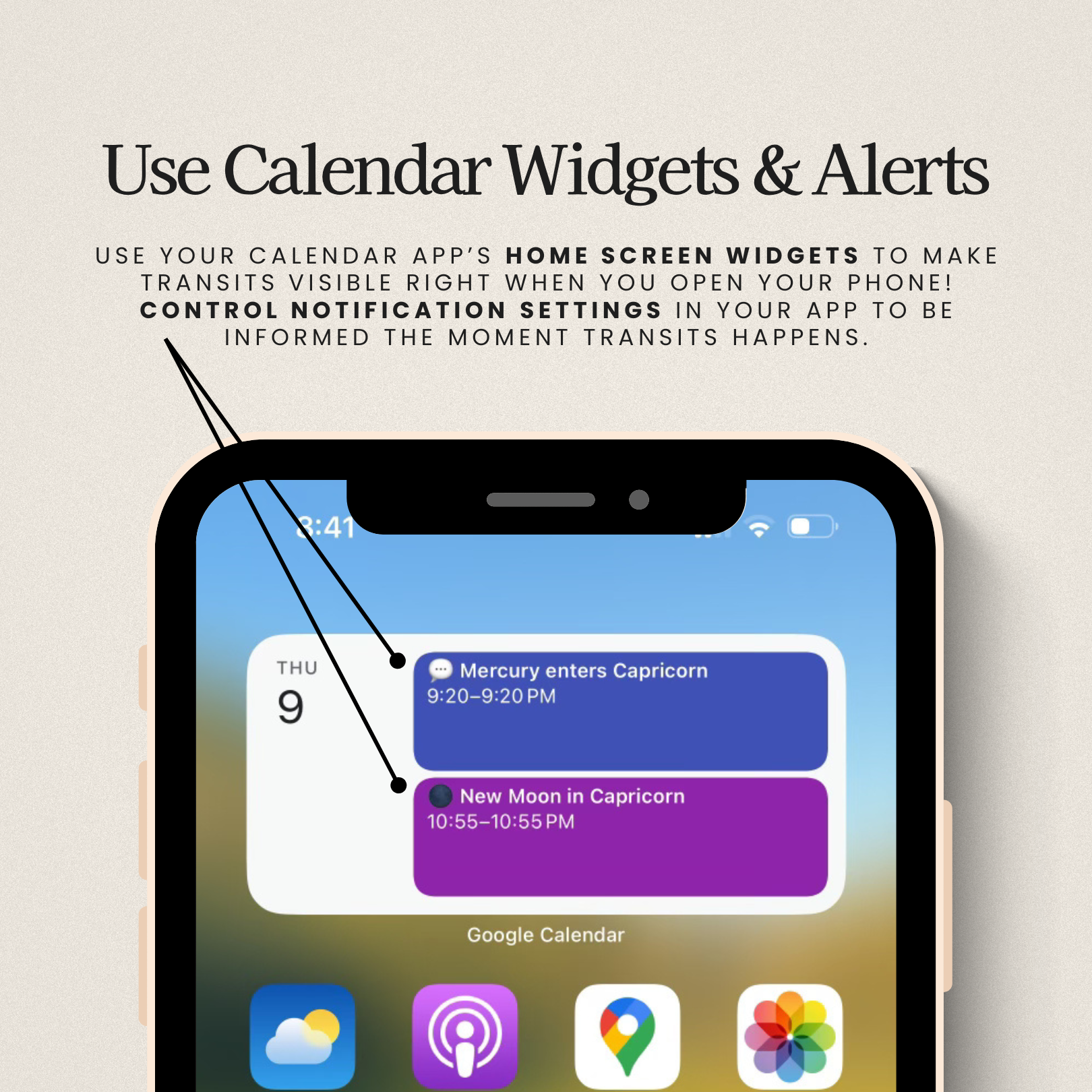 Use widgets and alerts to keep astrology visible throughout your day. Add home screen widgets or enable notifications to see exactly when transits happen, right when you need to know.