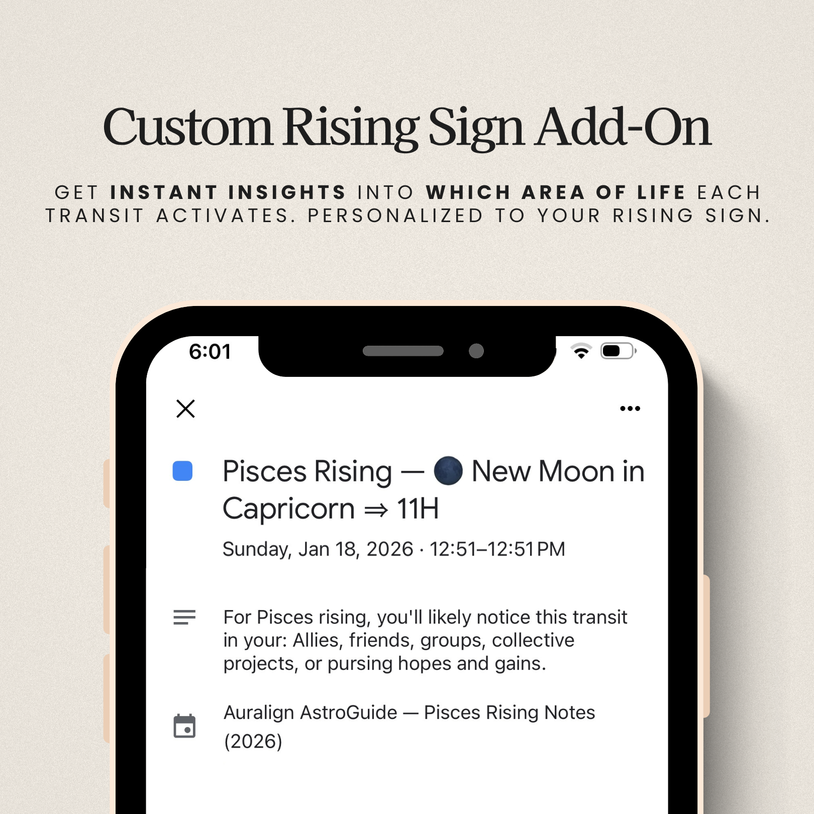 This add-on reveals which area of life each transit influences like career, home, relationships, or creativity, based on your unique rising sign.
