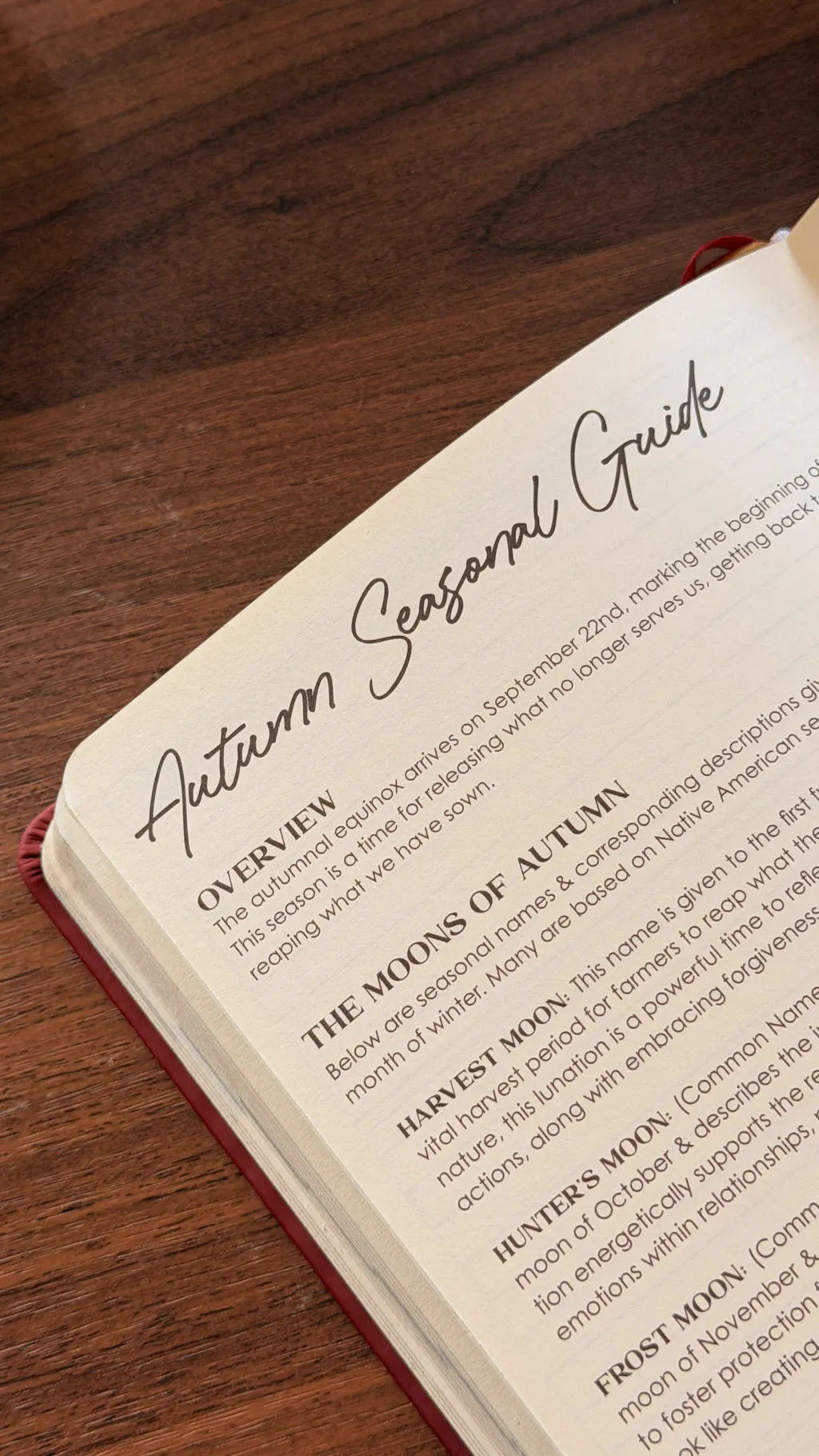 Filled with seasonal wellness practices from around the world, writing prompts, seasonal foods, spells, & moons.